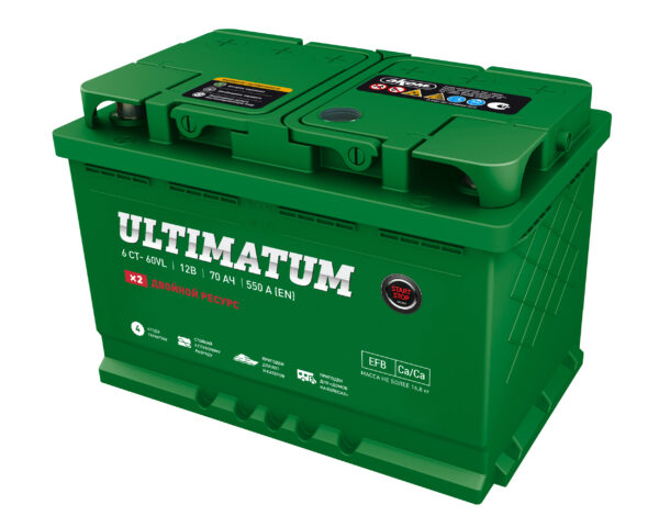 ЗАО «АКОМ» – предприятие нового поколения, один из лидеров отечественного производства аккумуляторных батарей. Аккумуляторы «АКОМ» производятся по новейшей технологии «Кальций-Кальций» (Ca/Ca). Кальциевые батареи имеют лучшую удельную емкость, более эффективный прием зарядного тока, они сохраняют стартовую емкость в течение 18 месяцев с момента производства. Такие аккумуляторные батареи не требуют обслуживания в течение трех лет. Эффект минимального выкипания воды при использовании кальция в решетках аккумуляторных пластин переводит батареи в категорию необслуживаемых. Аккумуляторная батарея «ULTIMATUM» предназначена для автомобилей с системой «Старт-Стоп», а также для автомобилей с большим количеством энергопотребителей на борту. Кроме того, АКБ «ULTIMATUM» может применяться на катерах, яхтах, «домах на колесах», т.е. там, где присутствуют условия энергопотребления, приводящие к глубоким разрядам обычного стартерного аккумулятора.