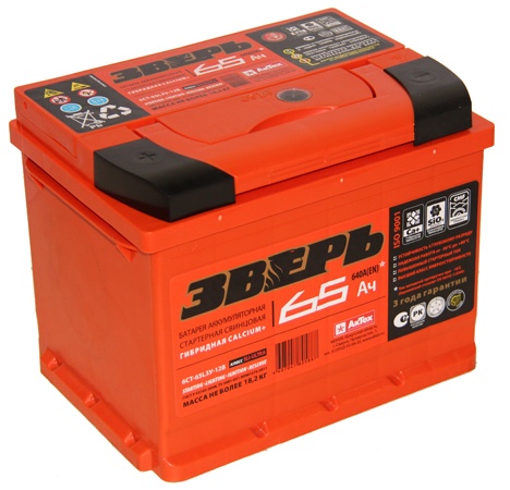 Аккумулятор ЗВЕРЬ 6СТ-65 Евро